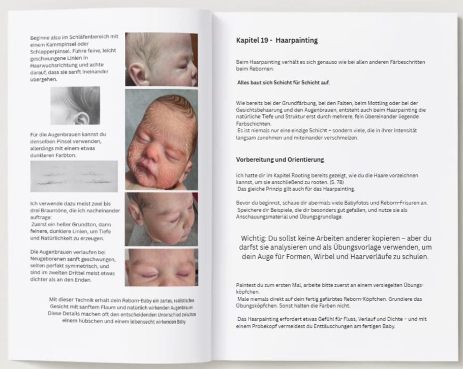 In diesem umfassenden Werk findest du eine komplette Anleitung für das Rebornen eines lebensecht aussehenden Puppenbabys.