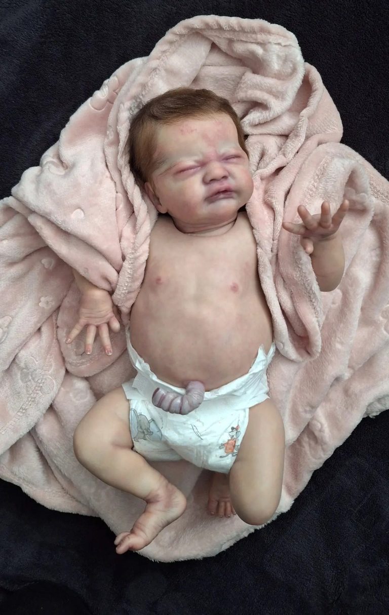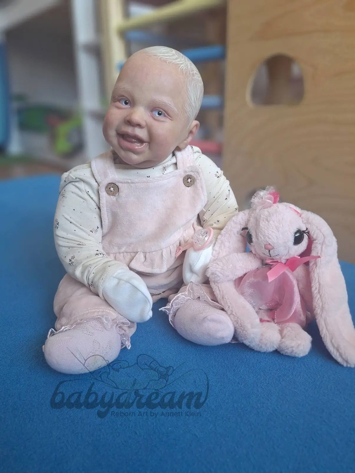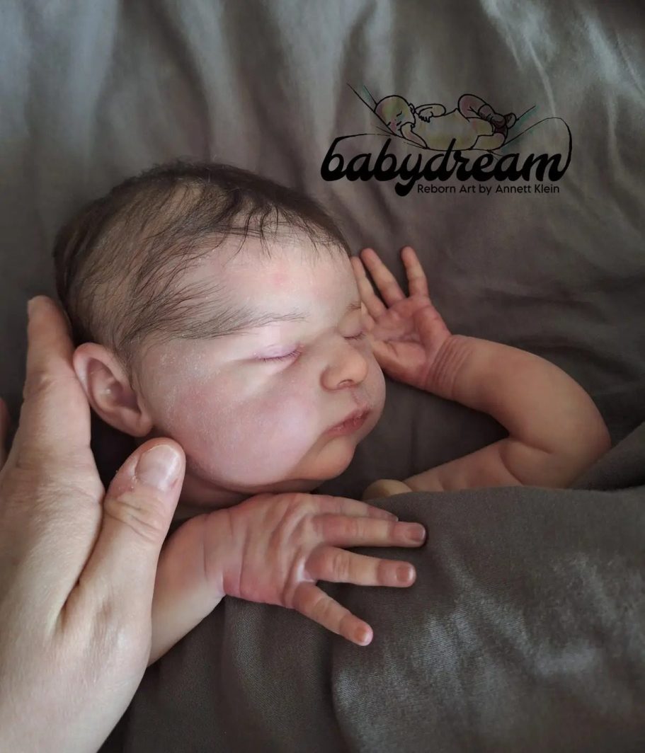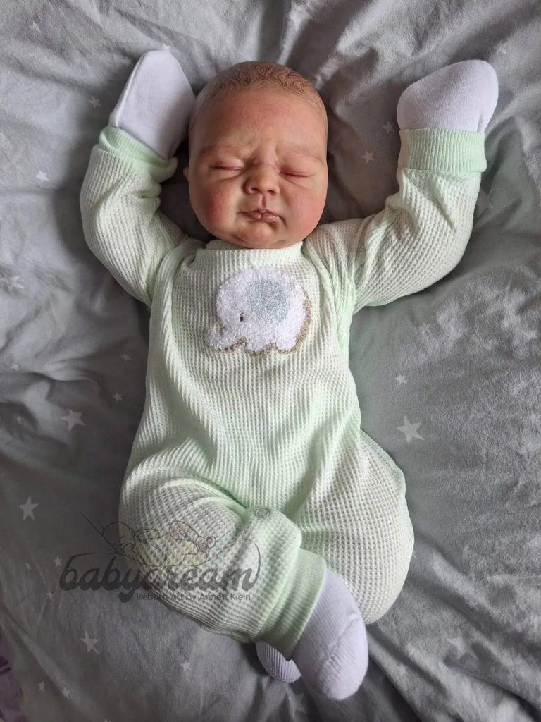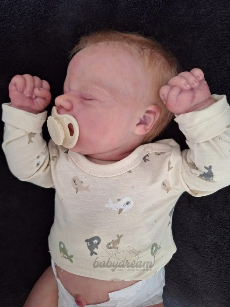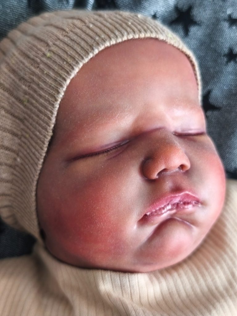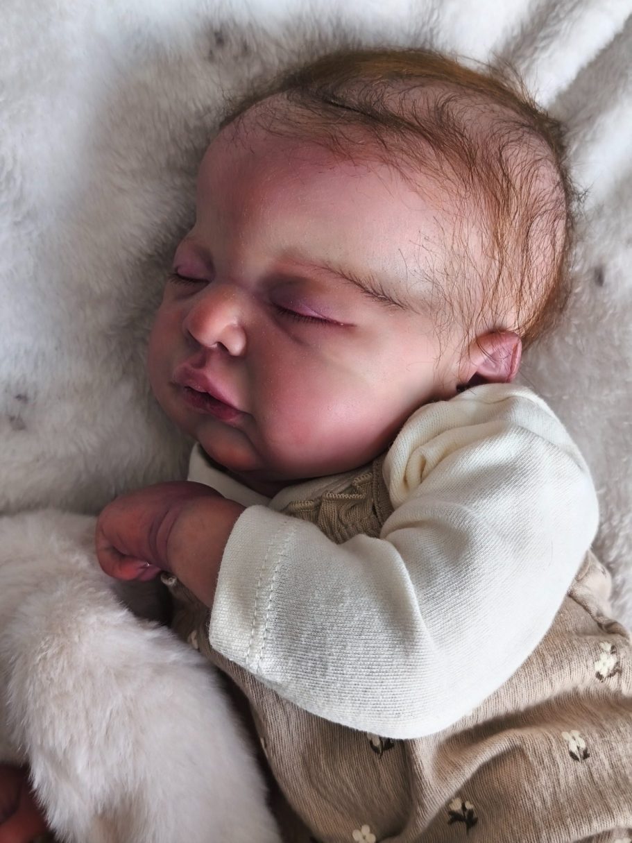 Die Haare sind in feinstem Mono-und Microrooting einzeln gestochen und aus feinem Mohair von JuNa. Die Bauchplatte für tolle Fotoshootings vollendet das Meisterwerk. Er wird mich nach Sonneberg begleiten.